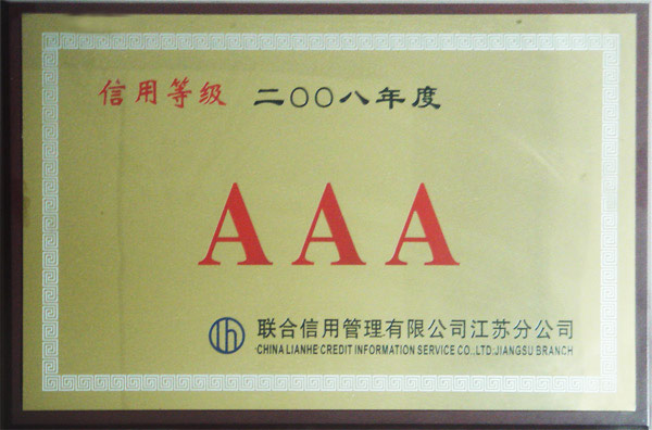 • 2008年AAA级企业资信等级